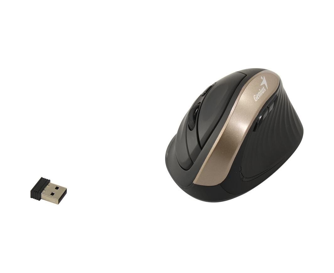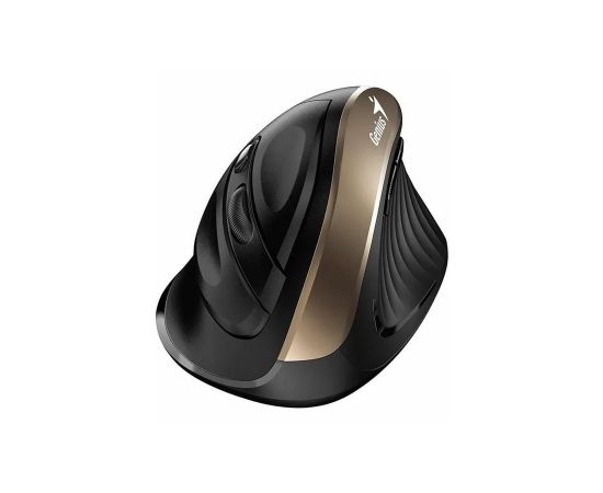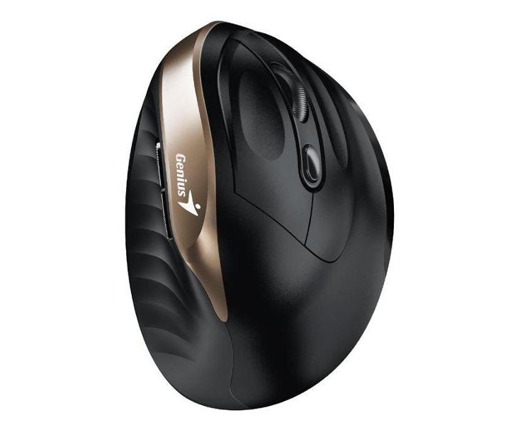Genius Ergo-8250S Black — вертикальная беспроводная мышь с оригинальным эргономичным дизайном корпуса, оптимизированная для правой руки. За подключение к компьютеру или ноутбуку отвечает радиомодуль, работающий на частоте 2,4 ГГц и обеспечивающий стабильную связь на расстоянии до 10 м. Разрешение оптического сенсора Blue Eye — 1600 т/д. Предусмотрено шесть кнопок. Материал, из которого сделан корпус, — пластик. Ножки выполнены из полипропилена. Модель получает питание от трех батареек AA, входящих в комплект поставки.