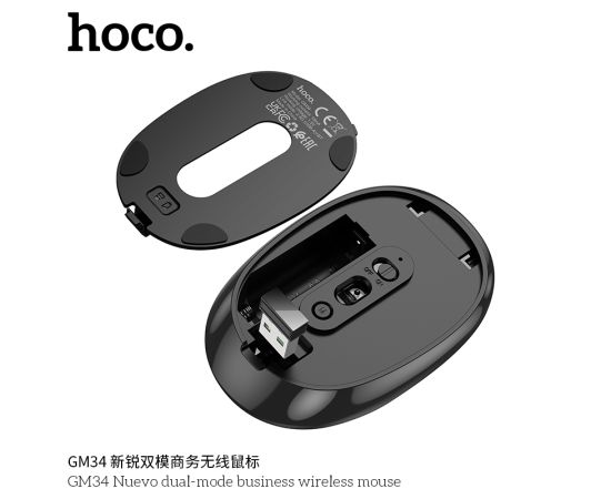 Мышь беспроводная HOCO GM34 Nuevo dual-mode business wireless mouse (черный металлический серый)