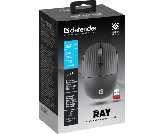 Мышь беспроводная DEFENDER Ray MM-032 серый,2.4G+BT,4кнопки,1600dpi