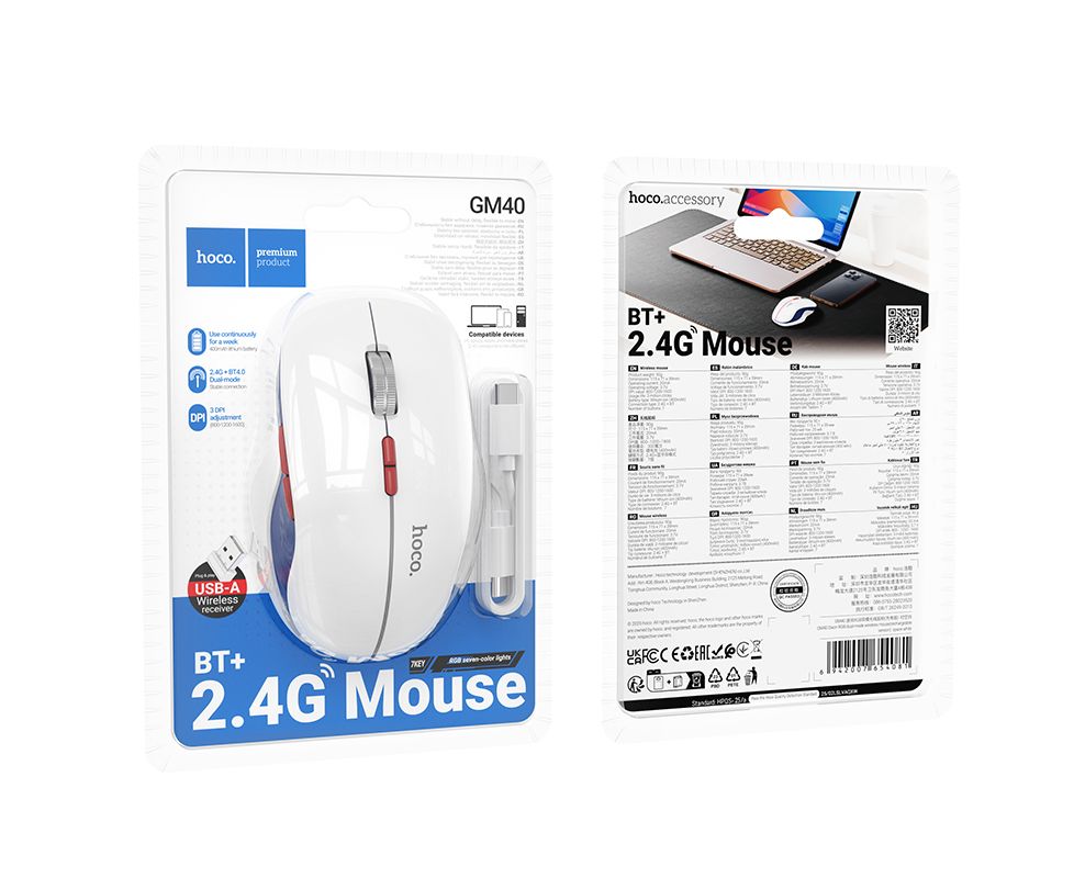Мышь HOCO GM40 Dixon RGB dual-mode беспроводная (белый)