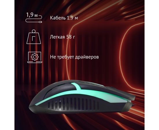 3 кнопки и колесо прокрутки расширяют возможности управления, предоставляя легкий доступ к основным функциям и командам. Способность работы на любой поверхности позволяет использовать мышь в различных условиях без потери производительности. А многоцветная подсветка не только создает уникальную атмосферу во время игры, но и выделяет рабочее место среди других.