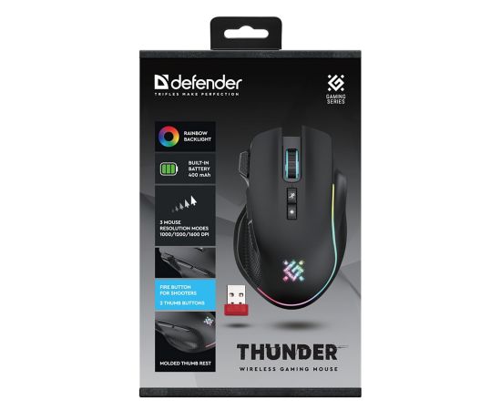 Мышь оптическая беспроводная Defender Thunder GM-213 1600dpi, 400мАч игровая (black) (238167)