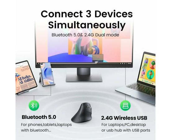 Мышь UGREEN MU008 (25444) Wireless Vertical Mouse Black