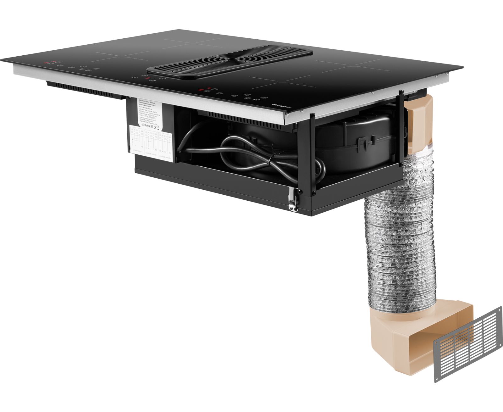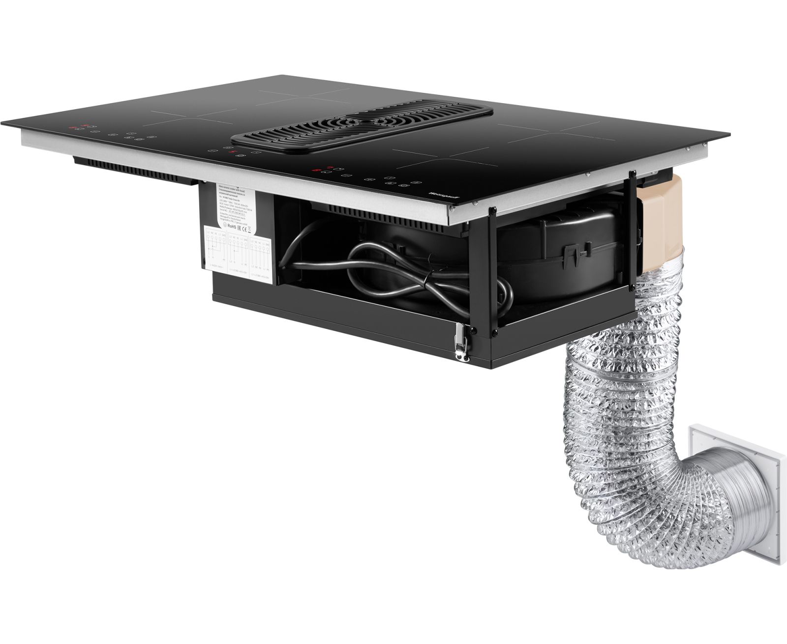 Специальный набор для подключения стеклокерамической панели со встроенной вытяжкой, подходит для использования с моделями HI 840 Tesla Cross Air и HI 840 Tesla Flex Air, позволяя использовать вашу варочную панель с вытяжкой в режиме отвода и рециркуляции.