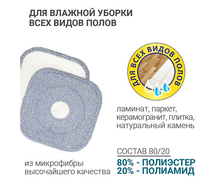 Комплектация: швабра-1шт, насадка-1шт, ведро-1шт, система отжима-1шт