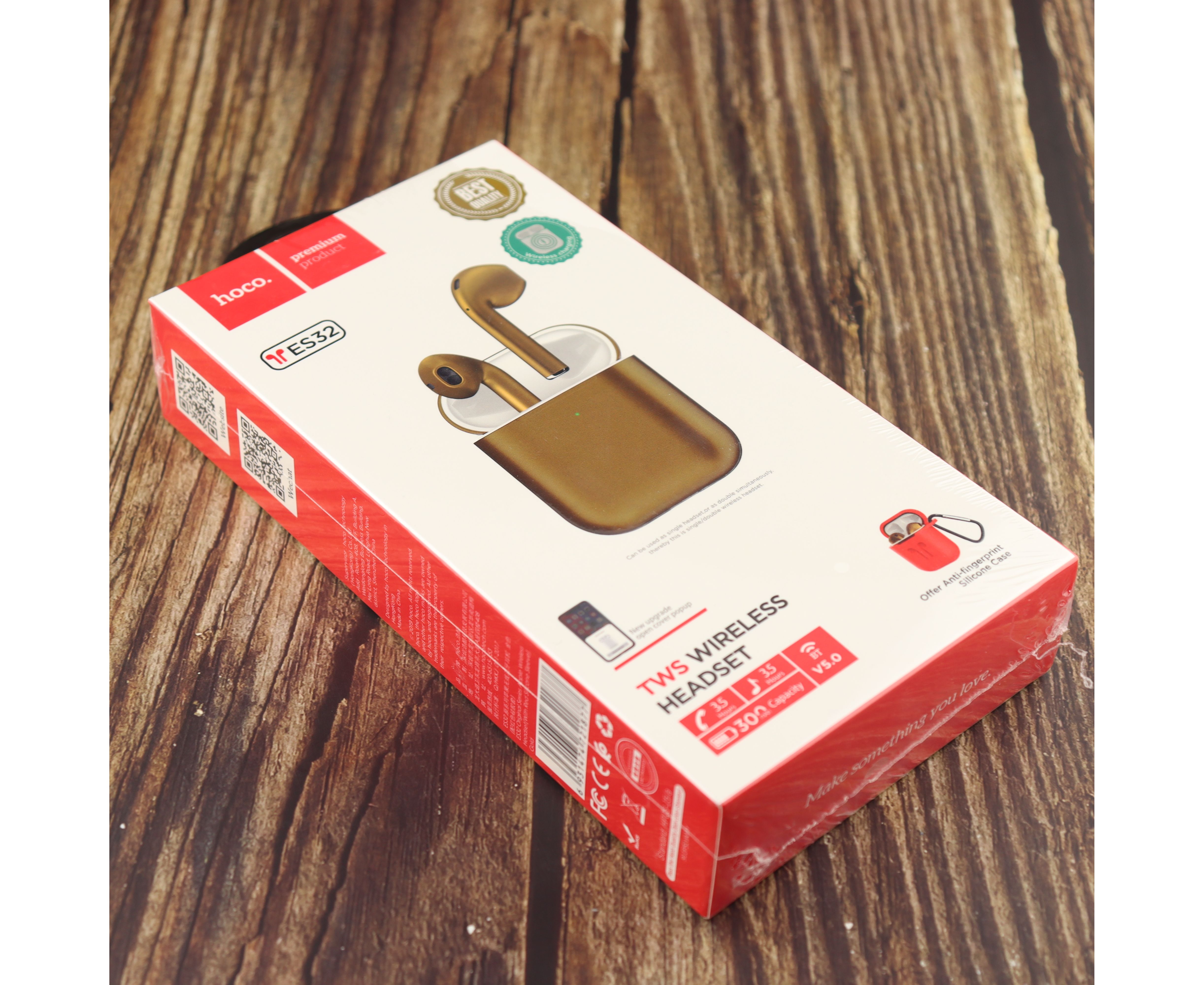 Наушники bluetooth HOCO ES32 Original series apple wireless headset(with red silicone case), gold