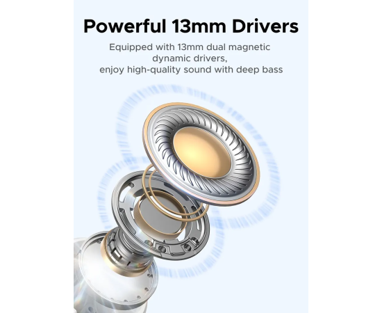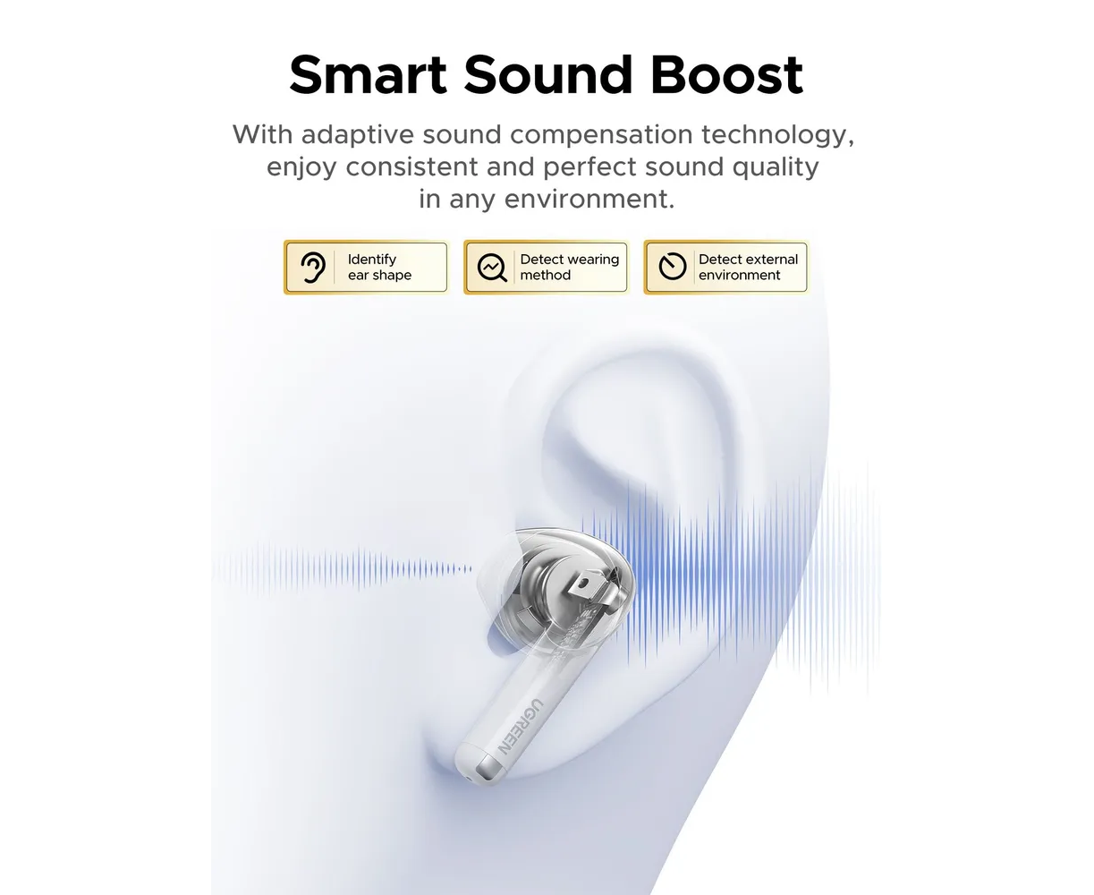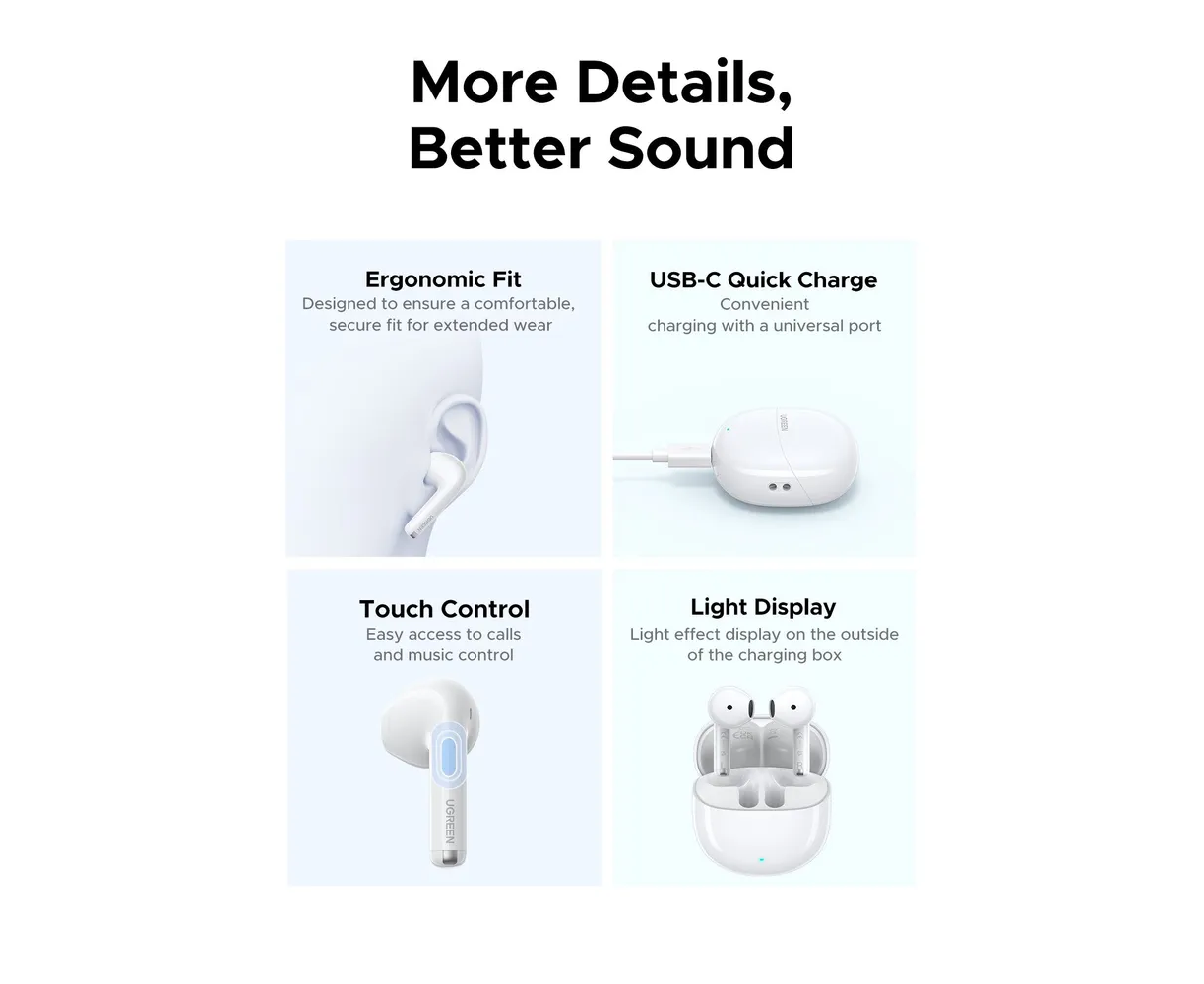 Наушники UGREEN WS217 (65876) LightBuds Bluetooth 6.0 Wireless ENC Earphone White