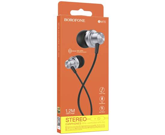 Наушники вакуумные AUX разъём с МК без рег.громкости длина 1.2м Borofone BM70 (Metal Gray)