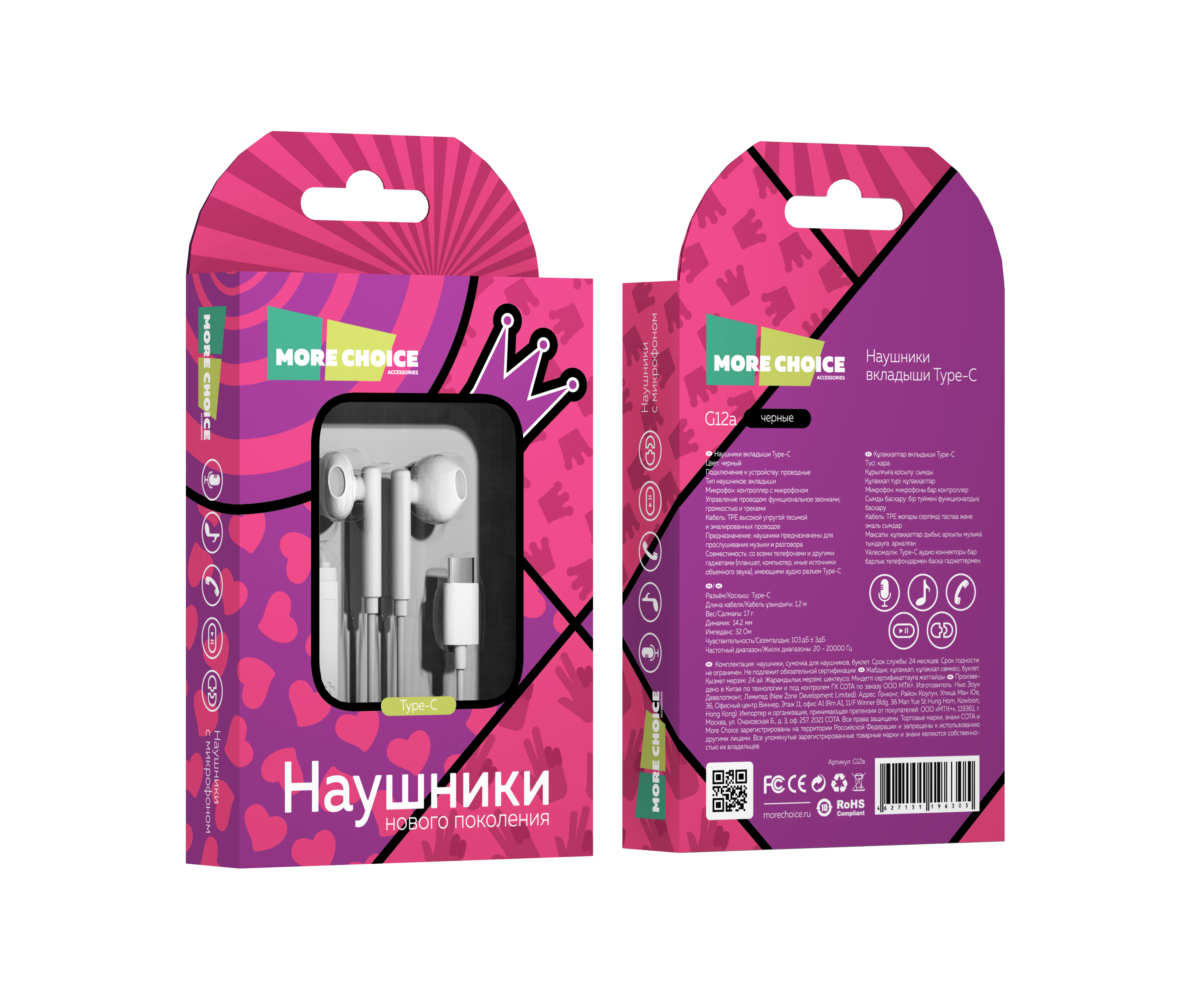Наушники вкладыши Type-C разъём с МК и рег. громкости длина 1.2м More choice G12 (White)