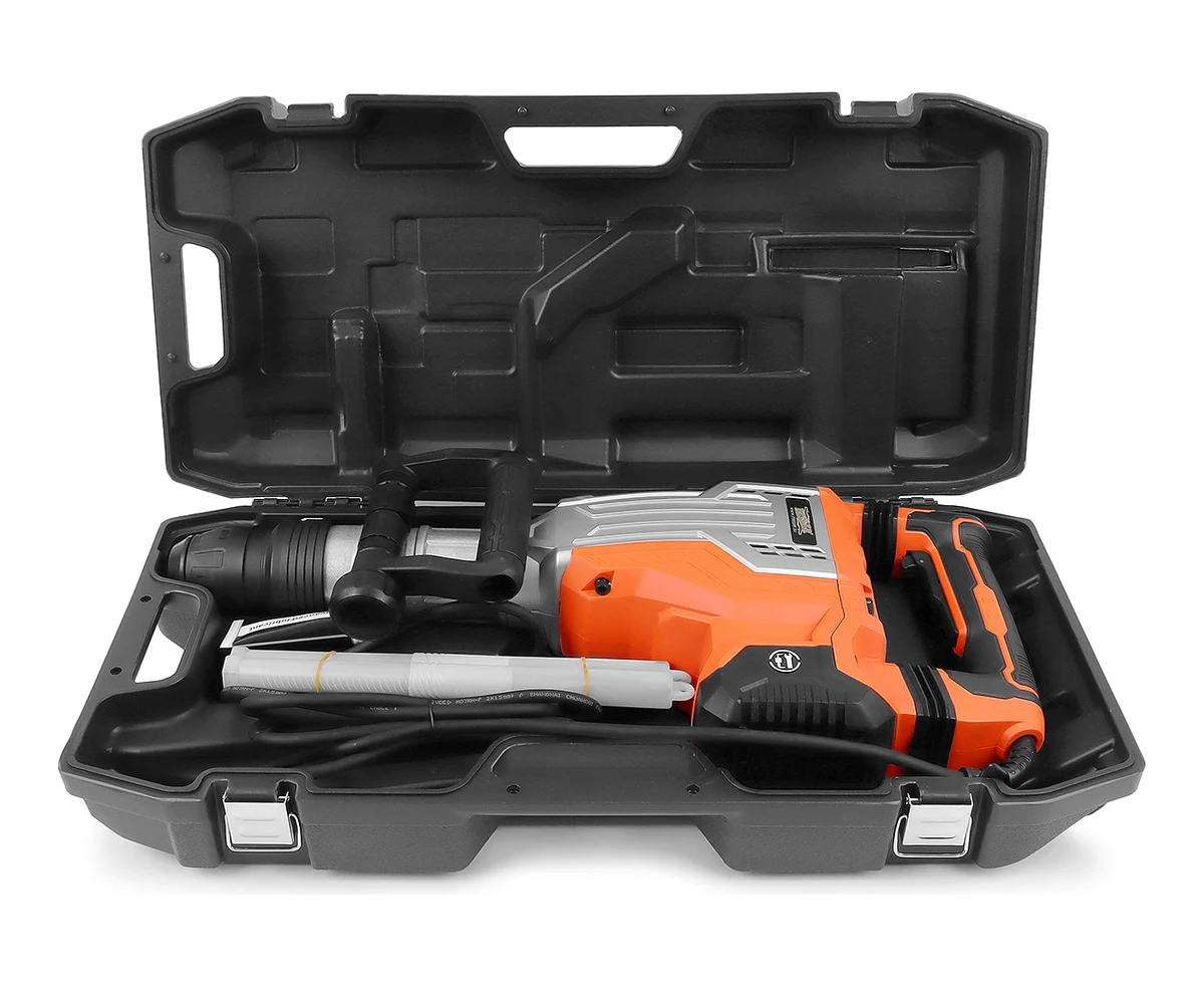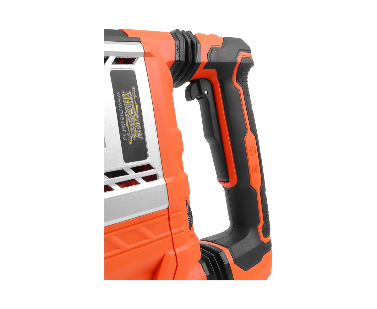 Отбойный молоток MESSER DS-45, с двигателем 1700 Вт., силой единичного удара 45 Дж., регулируемым количеством ударов от 200 до 2100 в минуту, патроном SDS-maх и весом всего 11 кг. Отбойный молоток MESSER DS-45 предназначен для выполнения большого объема работ по разрушению конструкций из бетона, кирпича, камня и других подобных строительных материалов, разрушению межэтажных перекрытий, вскрытию асфальтовых и железобетонных покрытий. Эффективная антивибрационная система и регулируемая дополнительная рукоятка способствуют комфортной работе пользователя. Поставляется в удобном для хранения и переноске пластиковом кейсе, имеющем транспортные колеса.