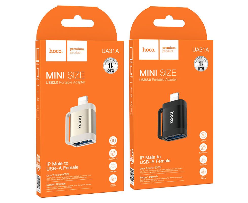 OTG переходник HOCO UA31A iP male to USB female OTG adapter (черный)