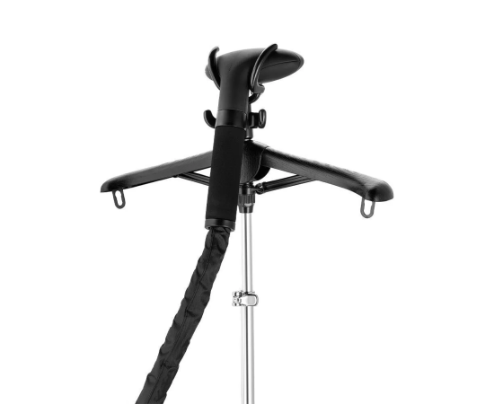 Во время отпаривания одежда может висеть на вешалке отпаривателя, установленной на телескопической стойке (которую при необходимости можно сложить), на обычной вешалке, подвешенной к отпаривателю, просто на вешалке. Подача пара прибора 20-40 г/мин.