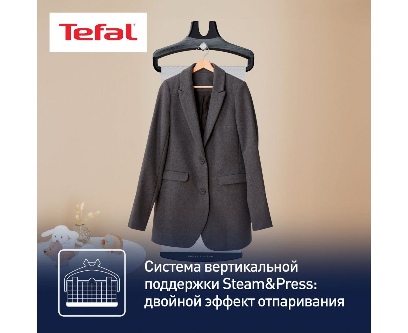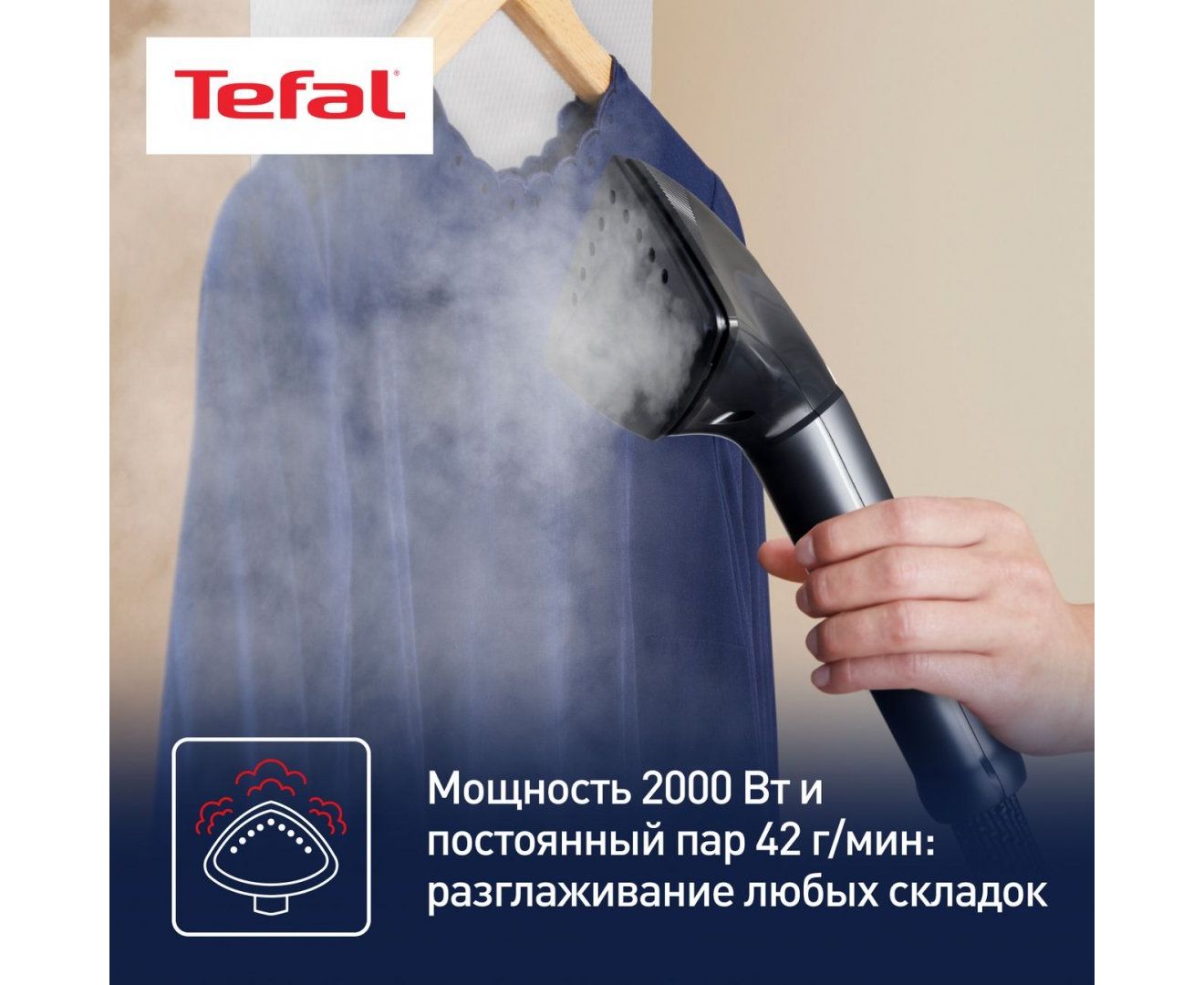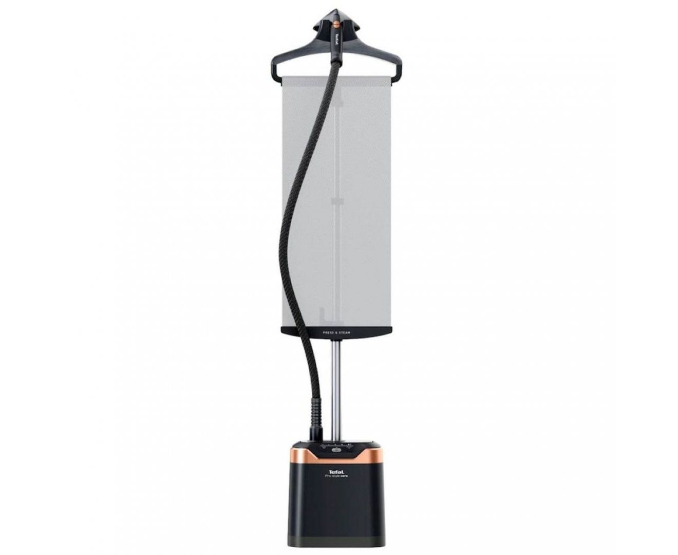 Вертикальный отпариватель Tefal IT8480E1 поддерживает пять режимов. Это позволяет выбрать оптимальные параметры подачи пара в зависимости от особенностей ткани. Сила пара регулируется до 42 г/мин посредством переключателей, расположенных на ручке. Широкая насадка Delta помогает устранять складки даже в труднодоступных местах. Вертикальная поддержка Press & Steam создает дополнительный упор. Одежда не отклоняется под струей пара, что улучшает результат.