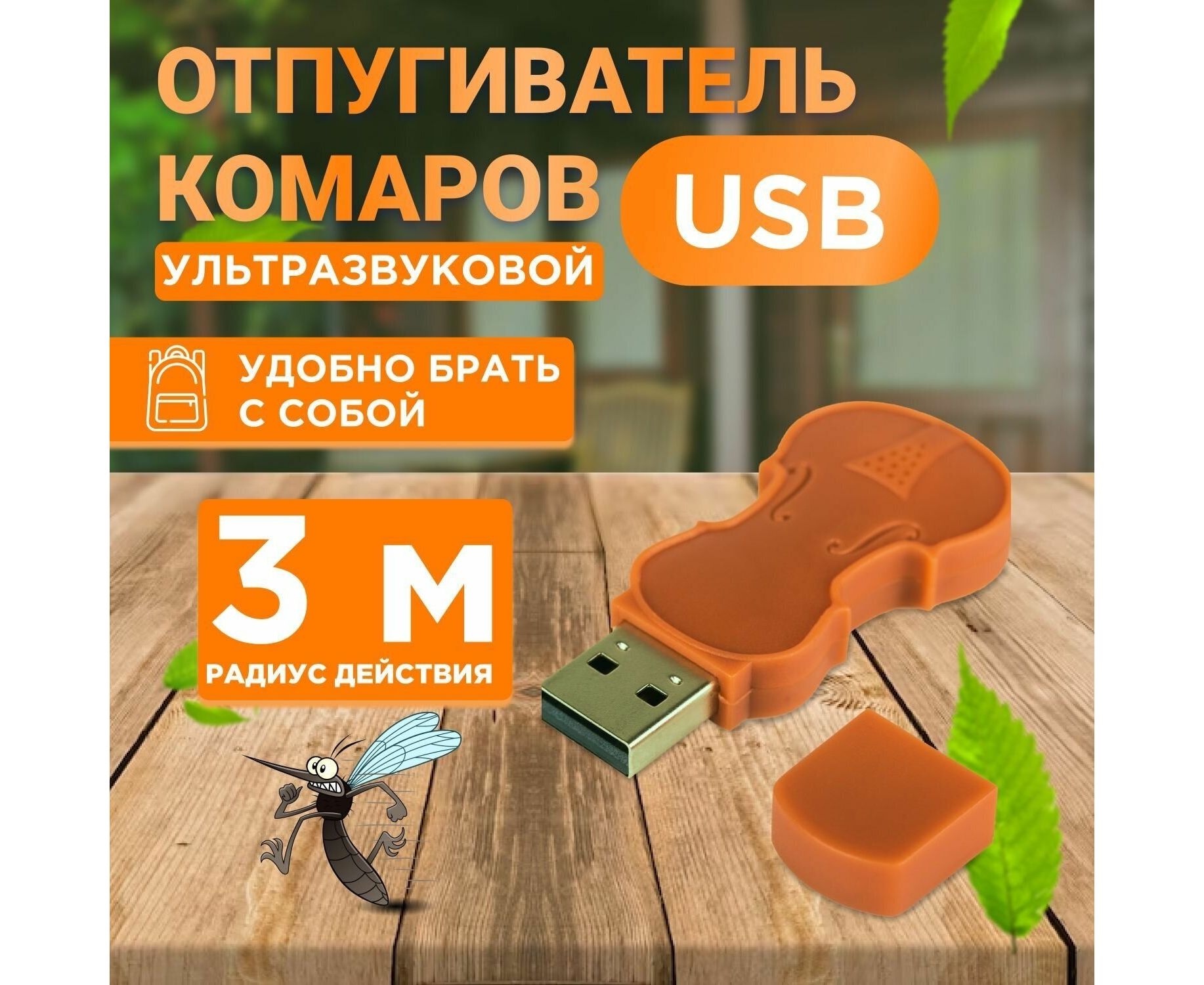 Портативный ультразвуковой отпугиватель c USB в виде флешки предназначен для отпугивания комаров путем имитации звука их природного врага – стрекозы.