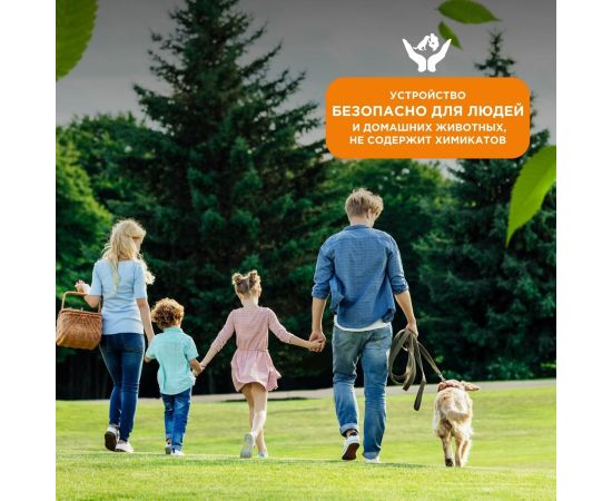 Устройство является безопасным, компактным, простым в эксплуатации и обеспечивает защиту от комаров.