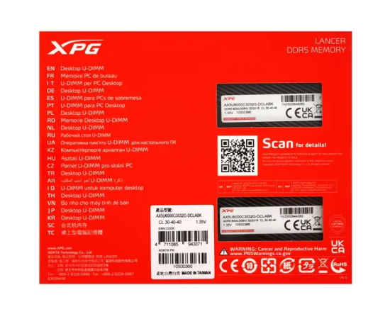ОЗУ ADATA XPG Lancer RGB AX5U6000C3032G-DCLABK 64GB DDR5 6000 DIMM 2*32, CL30-40-40