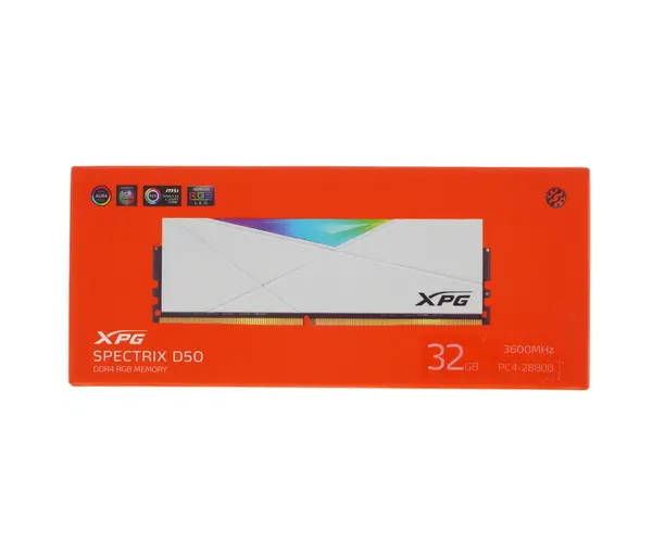 ОЗУ ADATA XPG SPECTRIX D50 (AX4U360032G18I-SW50), 32GB DDR4 UDIMM, 3600MHz CL18-22-22, 1.35V, RGB, Белый Радиатор