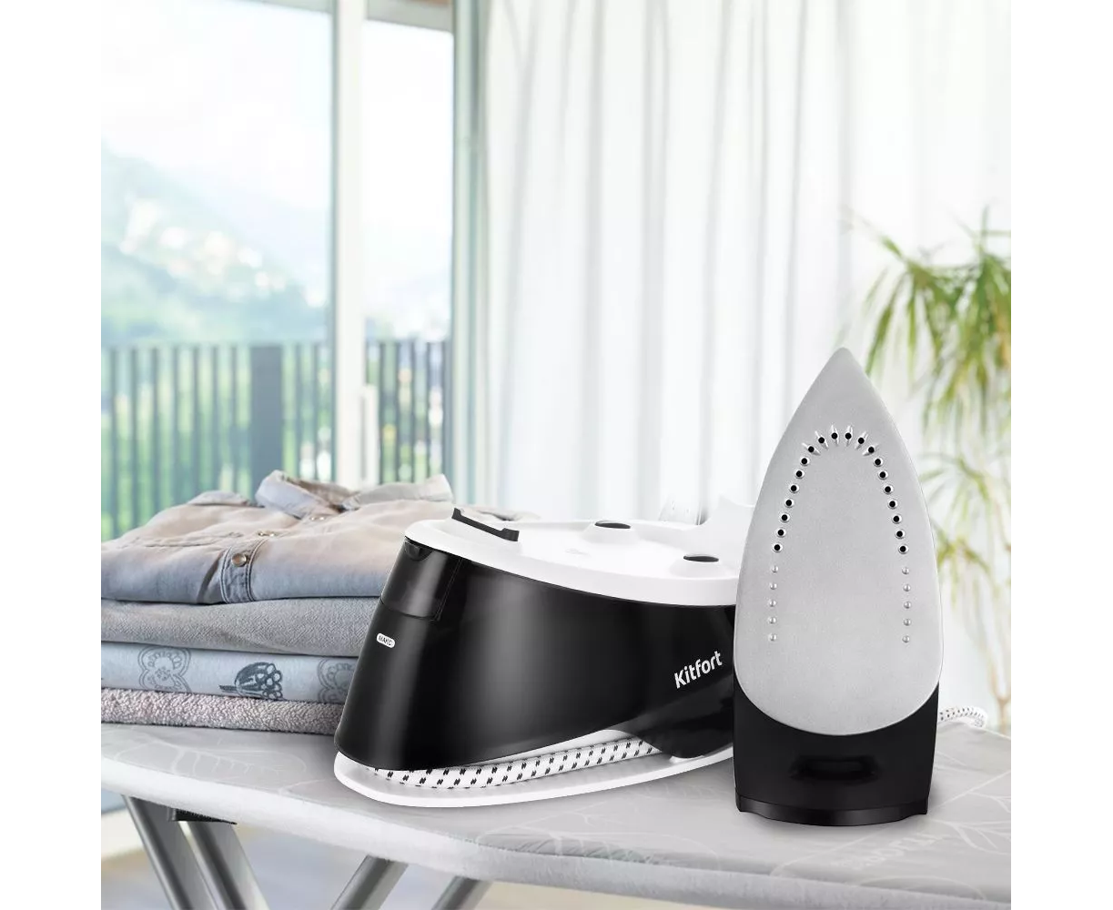 Паровая станция KT-9142 - это устройство, заменяющее утюг и отпариватель. Она состоит из утюга и подставки для утюга с резервуаром для воды. Прибор обеспечивает непрерывную подачу пара и справится с глажкой рубашки и брюк за 5 минут!