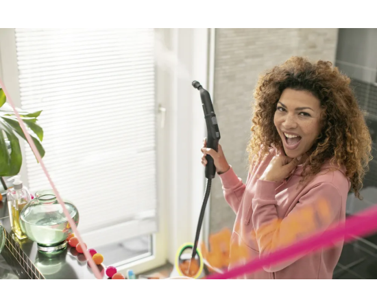Двухступенчатый регулятор подачи пара интенсивностью до 100 г/мин позволяет выбрать подходящий режим для очистки. Максимальное давление — 3,2 Бар. Предохранитель размещен на пистолете и обеспечивает безопасность и защиту от ожогов. Номинальная мощность равна 1500 Вт. Ударопрочный корпус размещает светодиодный индикатор, который показывает готовность к работе, включение, контроль пара и режим работы. Предусмотрена вертикальная парковка прибора. Для хранения насадок используется специальный держатель. В комплектацию входят: чехол для переноски и удлинитель составной трубки. Цвет модели — белый. Вес — 2,68 кг.