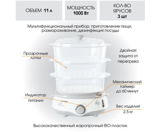 Пароварка Endever Vita-170, белый/серый