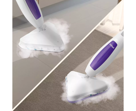 Паровая швабра КТ-1056 — универсальное устройство, которое поможет избавиться от пыли и грязи с помощью мощной струи пара, а также продезинфицирует обрабатываемую поверхность. Высокая температура способствует процессу очистки любых загрязнений.