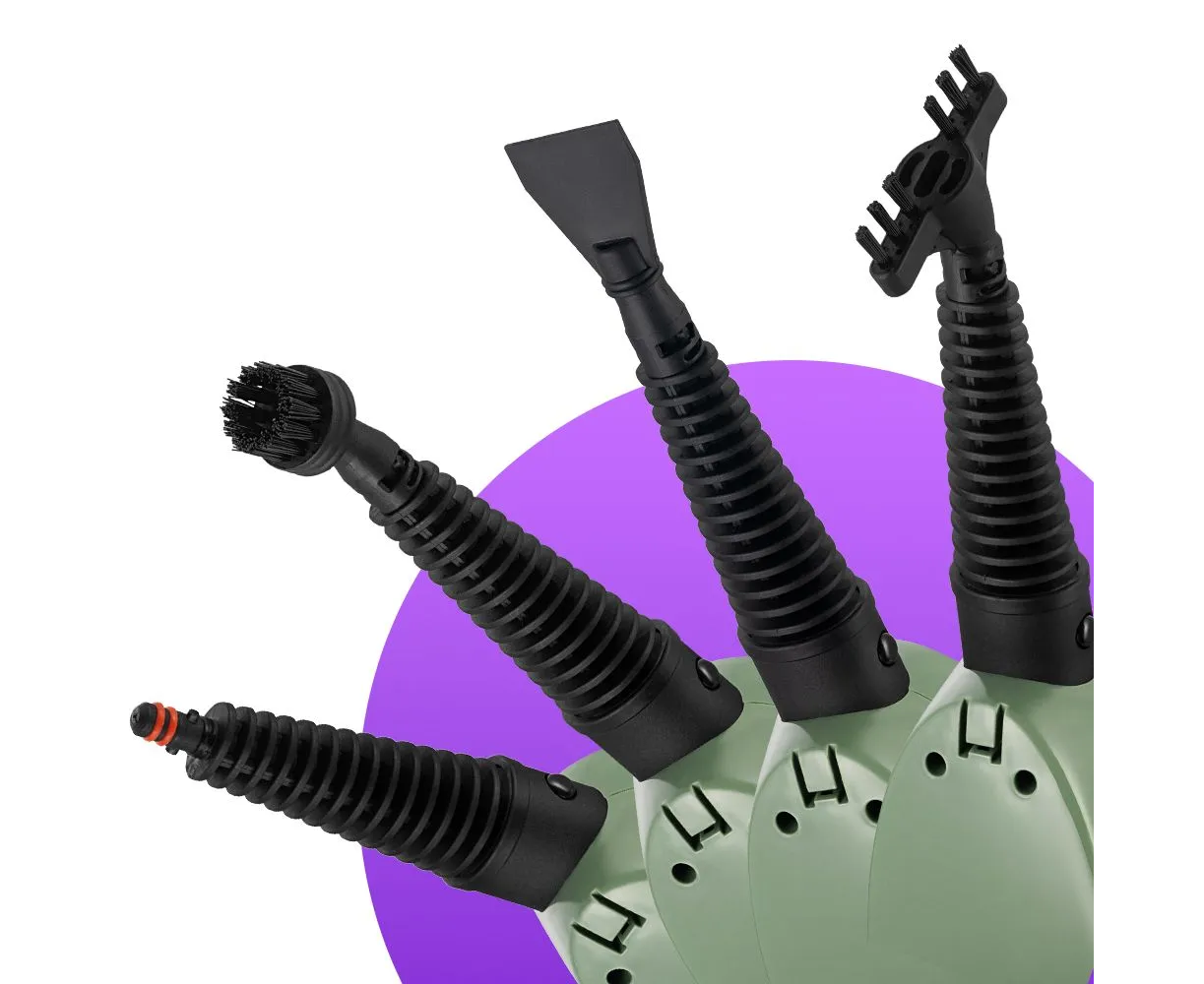 При помощи специальных насадок из комплекта КТ-3930 очистит напольные покрытия, раковину и плиту на кухне, зеркала, окна и плитку в ванной без каких-либо химических средств, исключительно паром.