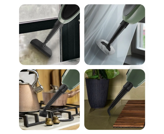 Конструкция «2 в 1» предусматривает наличие ручного модуля паровой швабры, который удобно использовать с насадками. С помощью насадок можно очистить большинство вещей в доме.