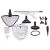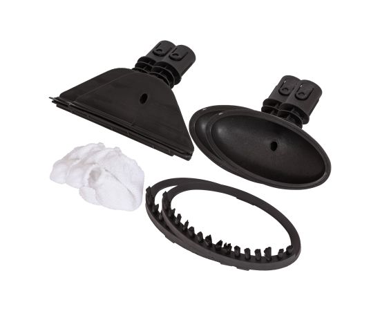 швабра, мерный стакан, воронка, насадка для очистки ковров, насадка из микрофибры для очистки пола, конусная насадка, металлическая щетка, нейлоновая щетка, насадка скребок, изогнутая насадка, насадка-щетка для очистки межплиточных швов, насадка для отпаривания, микрофибра для отпаривания, дополнительная щетка для отпаривания, насадка для окон, инструкция на русском языке