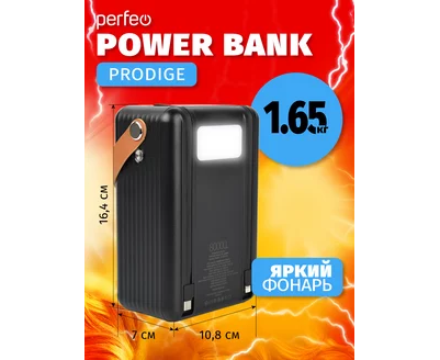 Повербанк Perfeo PRODIGE 80000 mAh/LED/PD + QC 3.0/Type-C/Lightning/3 USB/Выход: 5A, max 22.5W, черный