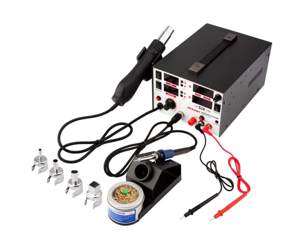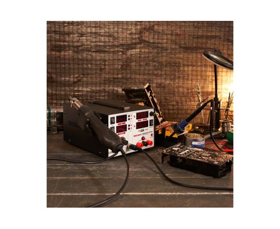 Уникальная многофункциональная паяльная станция 3 в 1 применяется для демонтажа или пайки различных видов электронных компонентов. Используется для ремонта портативной электроники, бытовой техники, а также для сборочных операций в небольшом производстве.