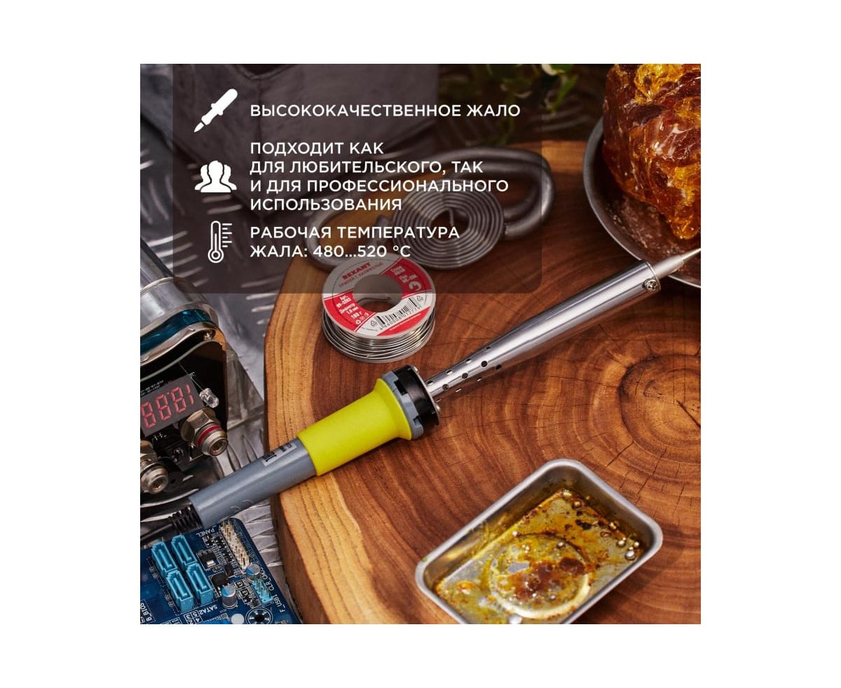 Паяльник с долговечным жалом мощностью 80Вт REXANT предназначен для ручного монтажа/демонтажа деталей среднего размера и лужения. Подходит как для любительского, так и для профессионального использования. Долговечное жало паяльника состоит из медьсодержащего сердечника, покрытого слоем электролитически осажденного железа, отличающегося высокой стойкостью к коррозии. При соблюдении ряда предосторожностей жало способно работать длительное время без утраты эксплуатационных свойств, а в случае необходимости его можно легко и быстро заменить (сменное жало в комплект не входит).