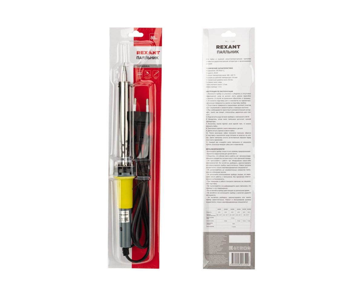 Паяльник Rexant 12-0125 с керамич. нагр. долгов. жало 230В, 80Вт