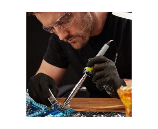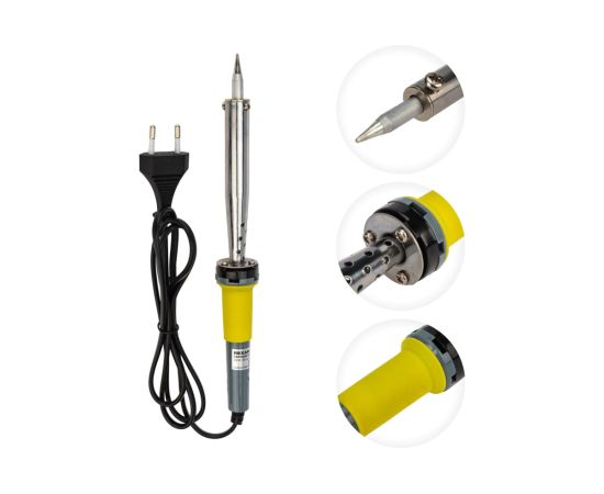 Нагреватель имеет керамическую трубку, которая повысит энергоэффективность прибора. Паяльник оснащен ударопрочной рукояткой из термостойкого пластика, с резиновой накладкой, которая сделает работу с инструментом легкой и приятной.