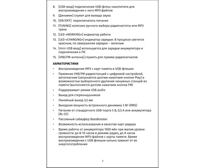 настройка колесиком; пассивный сабвуфер; MP3 плеер