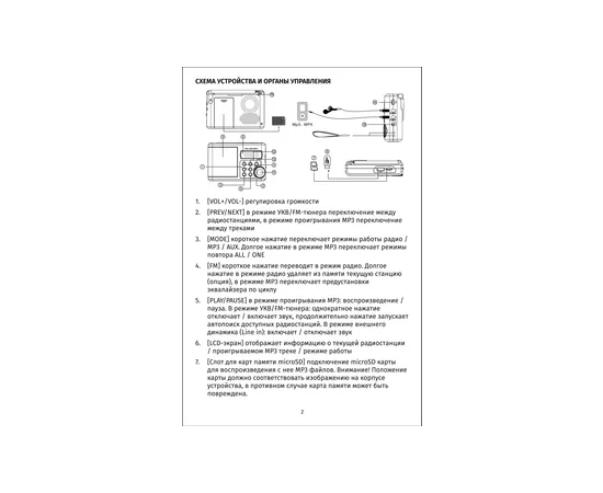 Инструкция - 1 шт; Гарантийный талон - 1; Кабель Mini USB - 1 шт; Радиоприемник - 1шт