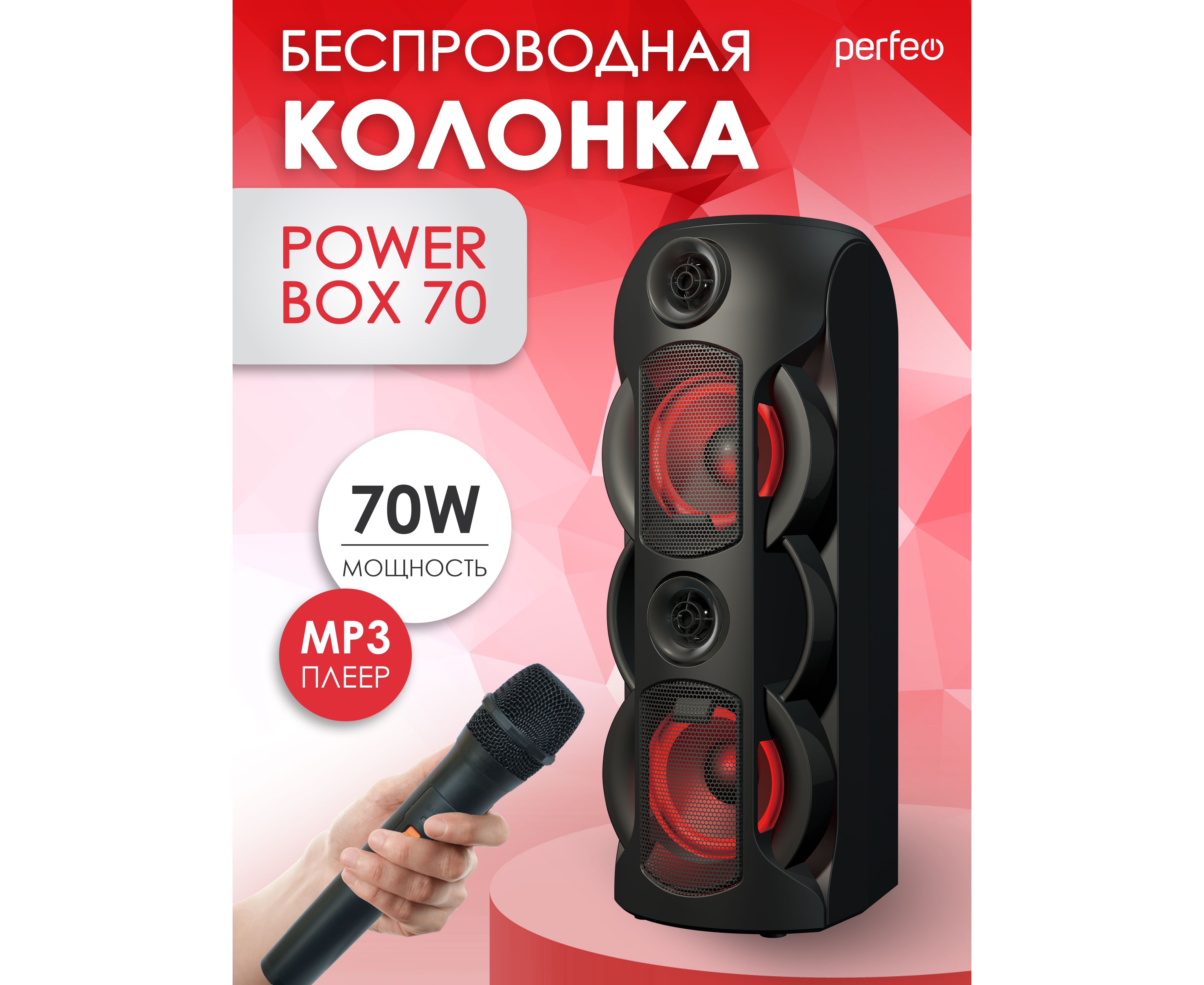PERFEO PF_B4986 POWER BOX 70 - это превосходная акустическая система с Bluetooth-подключением и широким набором функций. Она обеспечивает высокое качество звука благодаря своим мощным динамикам и имеет удобные интерфейсы для подключения различных устройств. С ее помощью вы сможете создать потрясающую атмосферу в вашем доме или офисе.