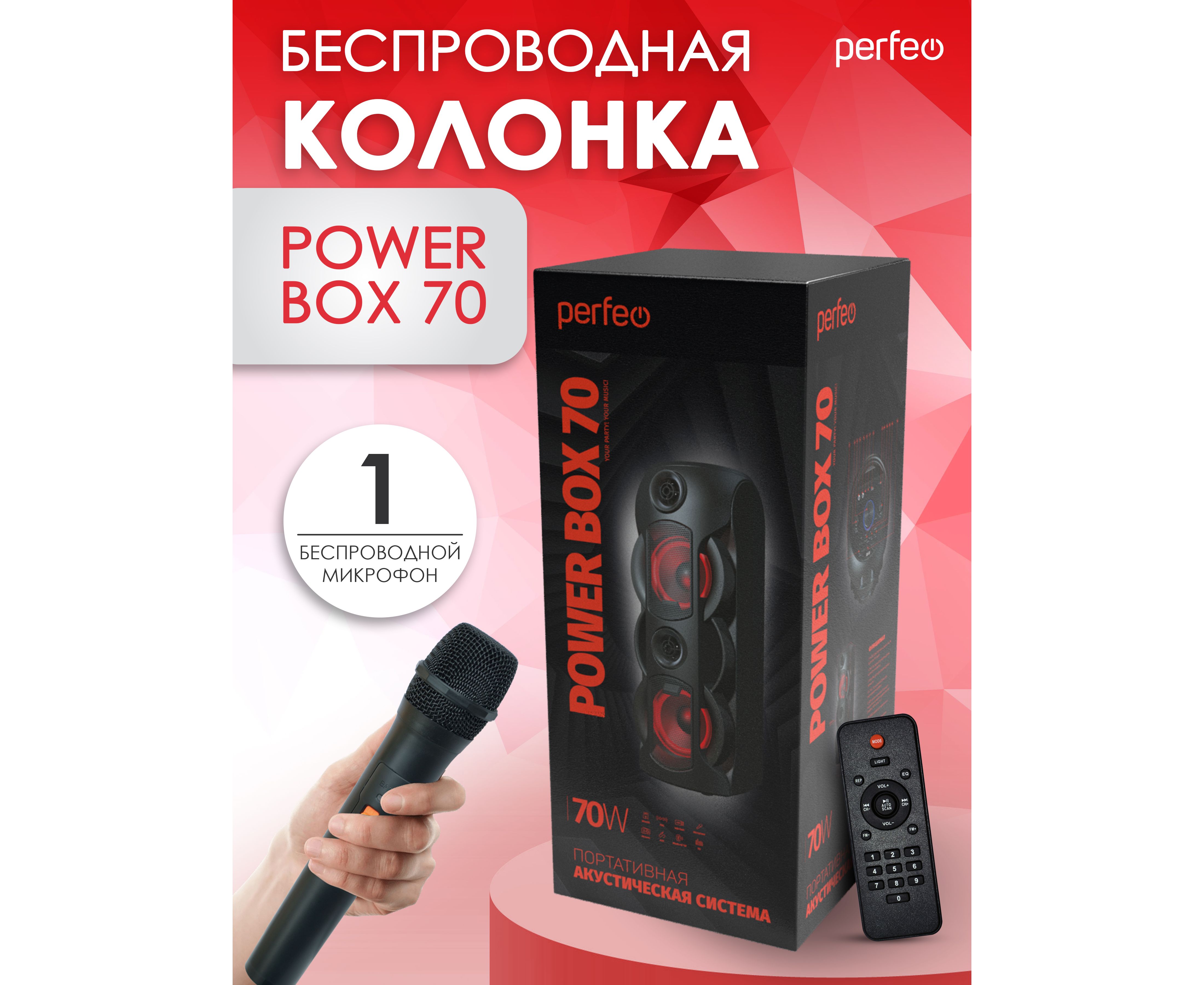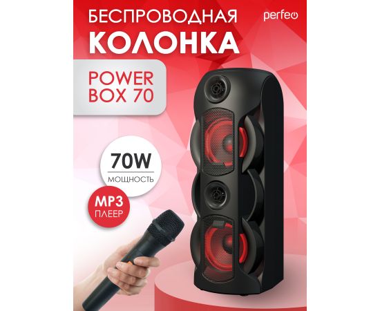 PERFEO PF_B4986 POWER BOX 70 - это современная акустическая система, которая превосходно подойдет для создания качественного звука в вашем доме. С помощью Bluetooth 5.0 вы сможете легко подключить свои устройства и наслаждаться музыкой без проводов.