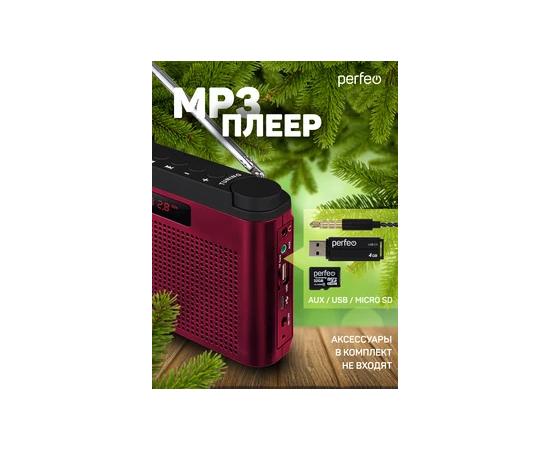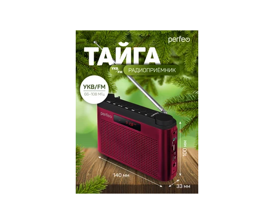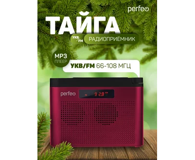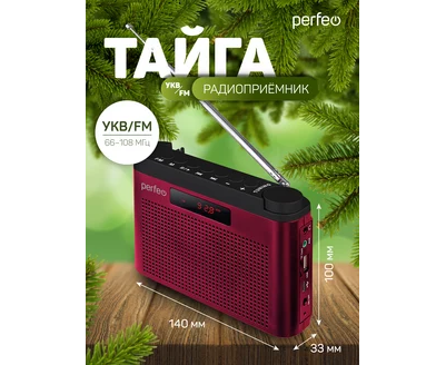Радиоприемник цифровой Perfeo ТАЙГА FM+ 66-108МГц/ MP3/ встроенный аккум, USB/ Бордовый (I70RED), (Арт. PF_C4940)
