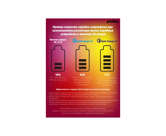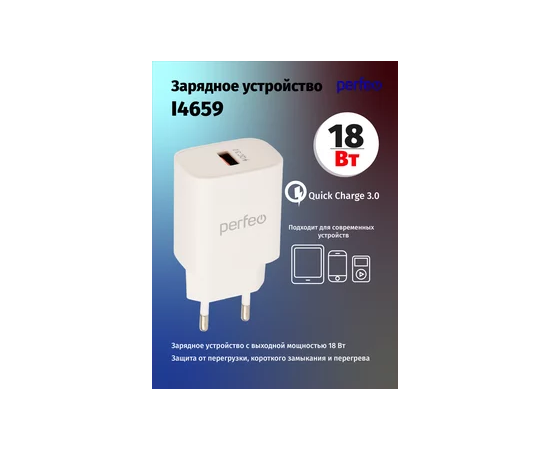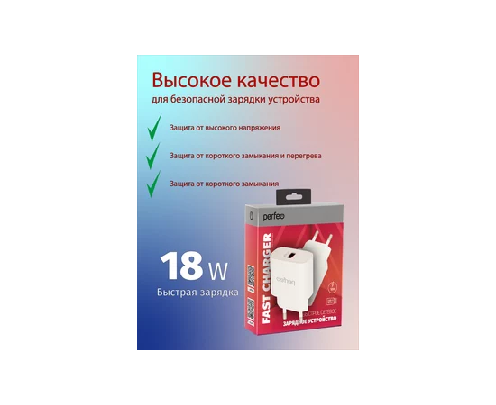Сетевое зарядное устройство PERFEO с разъемом USB, QC3.0, 18W, белый