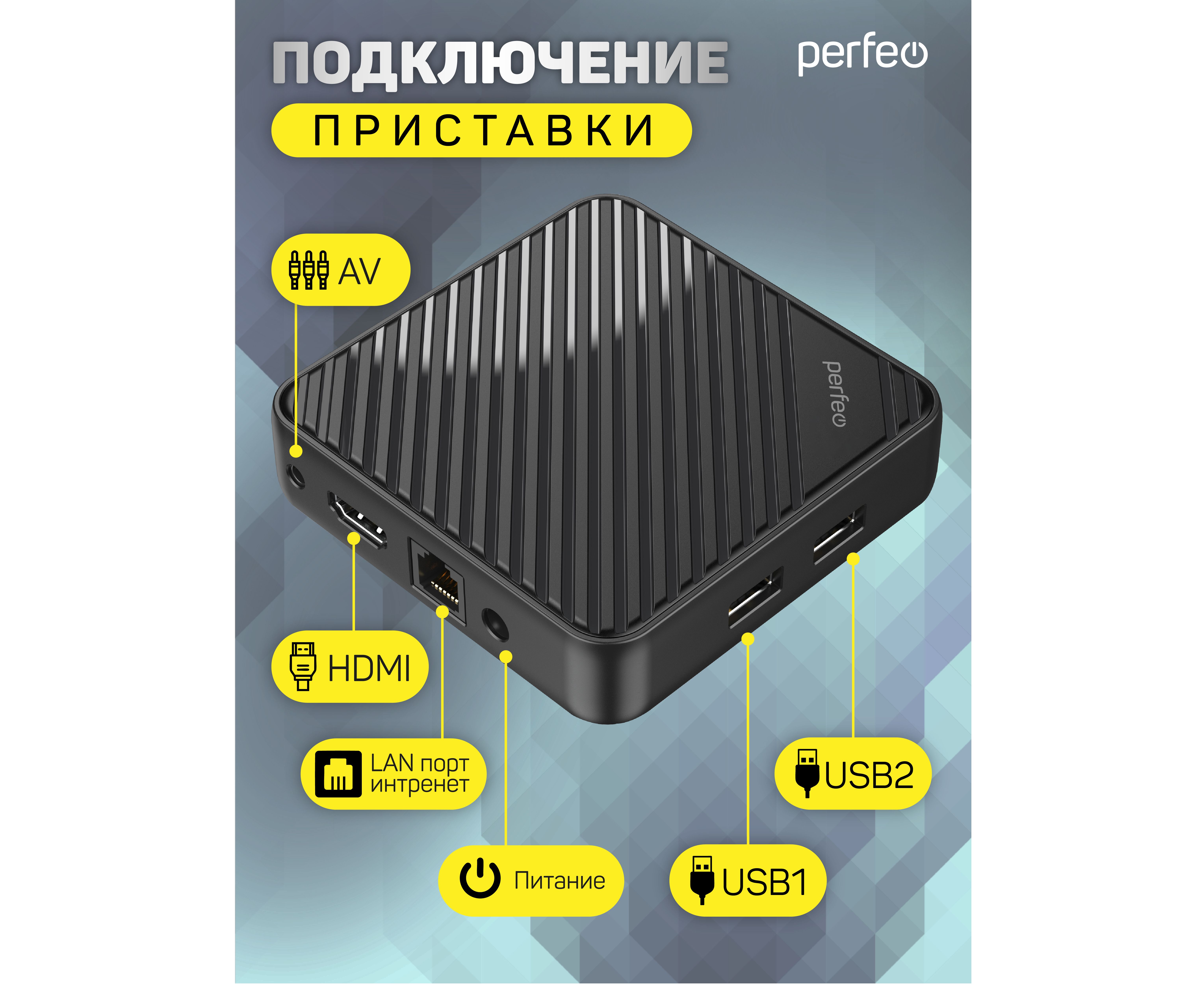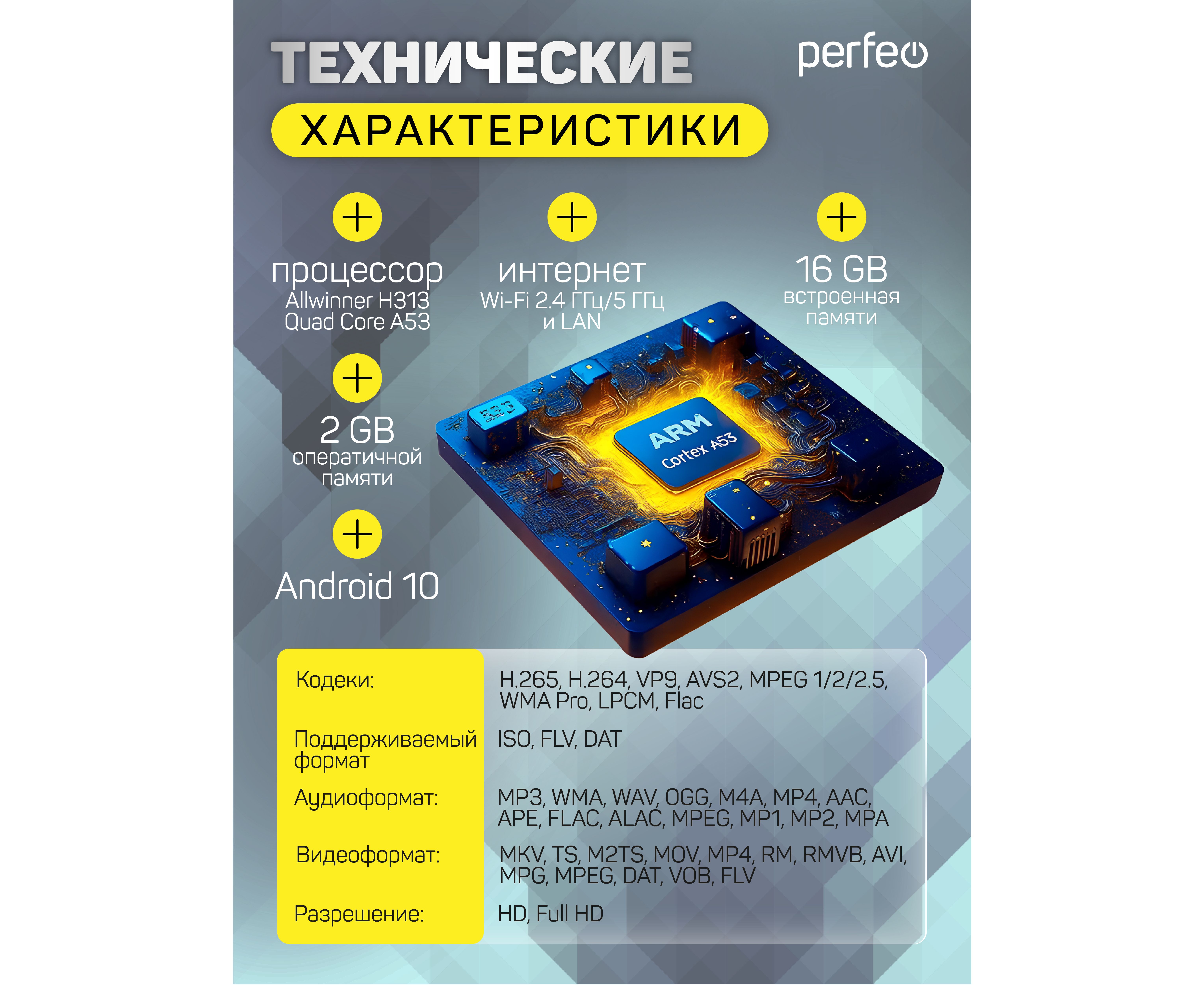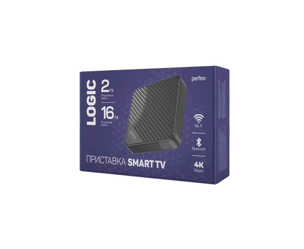 Приставка Perfeo SMART TV BOX "LOGIC 2/16", Allwinner H313, Android 10, 2Gb/16Gb, Пульт Bluetooth, (Арт. PF_A4555-C)
