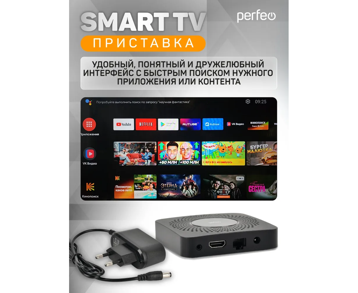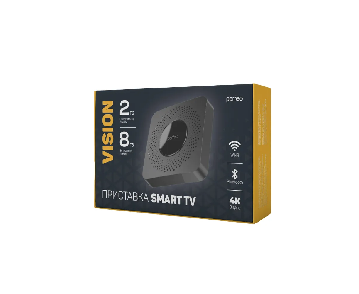 Приставка Perfeo SMART TV BOX "VISION 2/8", Allwinner H618, Android 12, 2Gb/8Gb, Пульт Bluetooth, (Арт. PF_A4559-C)