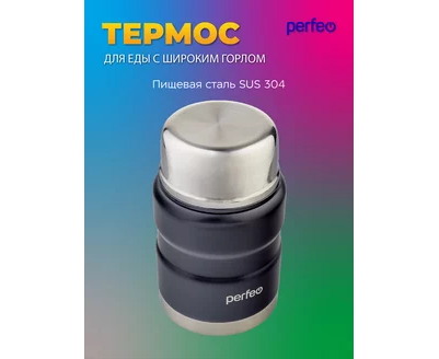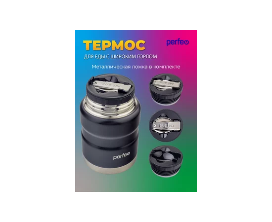 Термос для еды PERFEO с широким горлом, ложкой, объем 0,5 л., черный (PF_E1371)