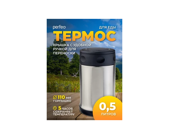 Термос для еды PERFEO с широким горлом, объем 0,5 л., нержавеющая сталь, (Арт. PF_C3724)