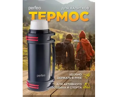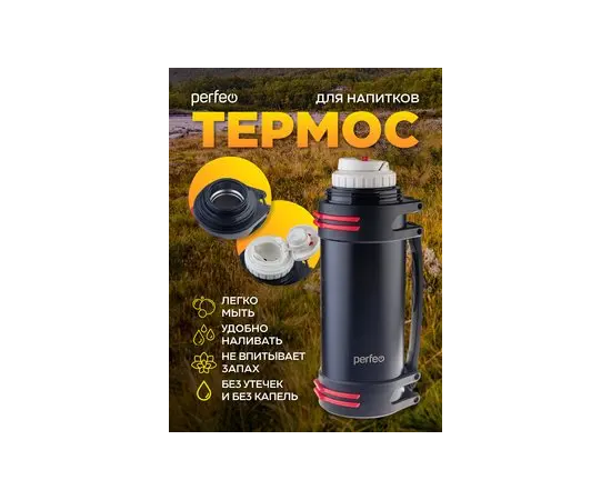 Термос для напитков PERFEO с крышкой-поилкой, ситечком, чашкой, ручкой, ремнем, объем 2 л., черный (PF_D0216)