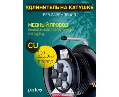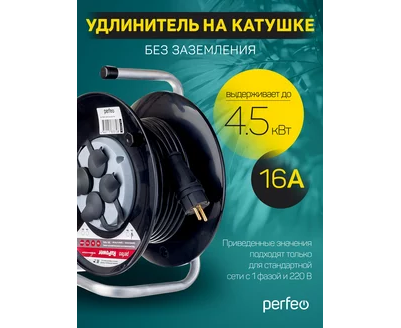 Удлинитель на катушке без заземления Perfeo "RU POWER" 20м 4гн 16А ПВС 2х2,5 IP44 (РБК16), (Арт. PF_C3370)