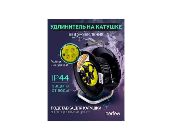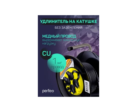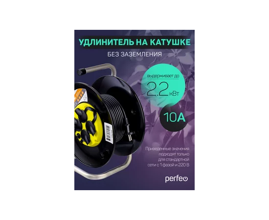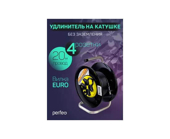 Удлинитель на катушке без заземления Perfeo "RU POWER" 20м 4гн с т/з 10А ПВС 2х1 IP44 (РБК16).