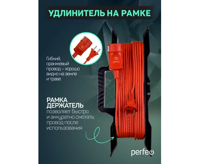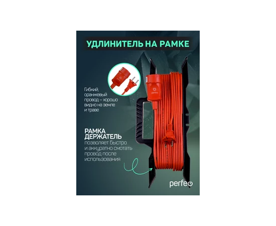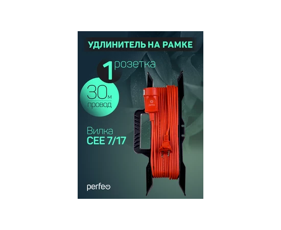 Удлинитель на рамке без заземления Perfeo "RU POWER" 30м 1гн 6А ПВС 2х0,75 (УХ6-101), оранжевый