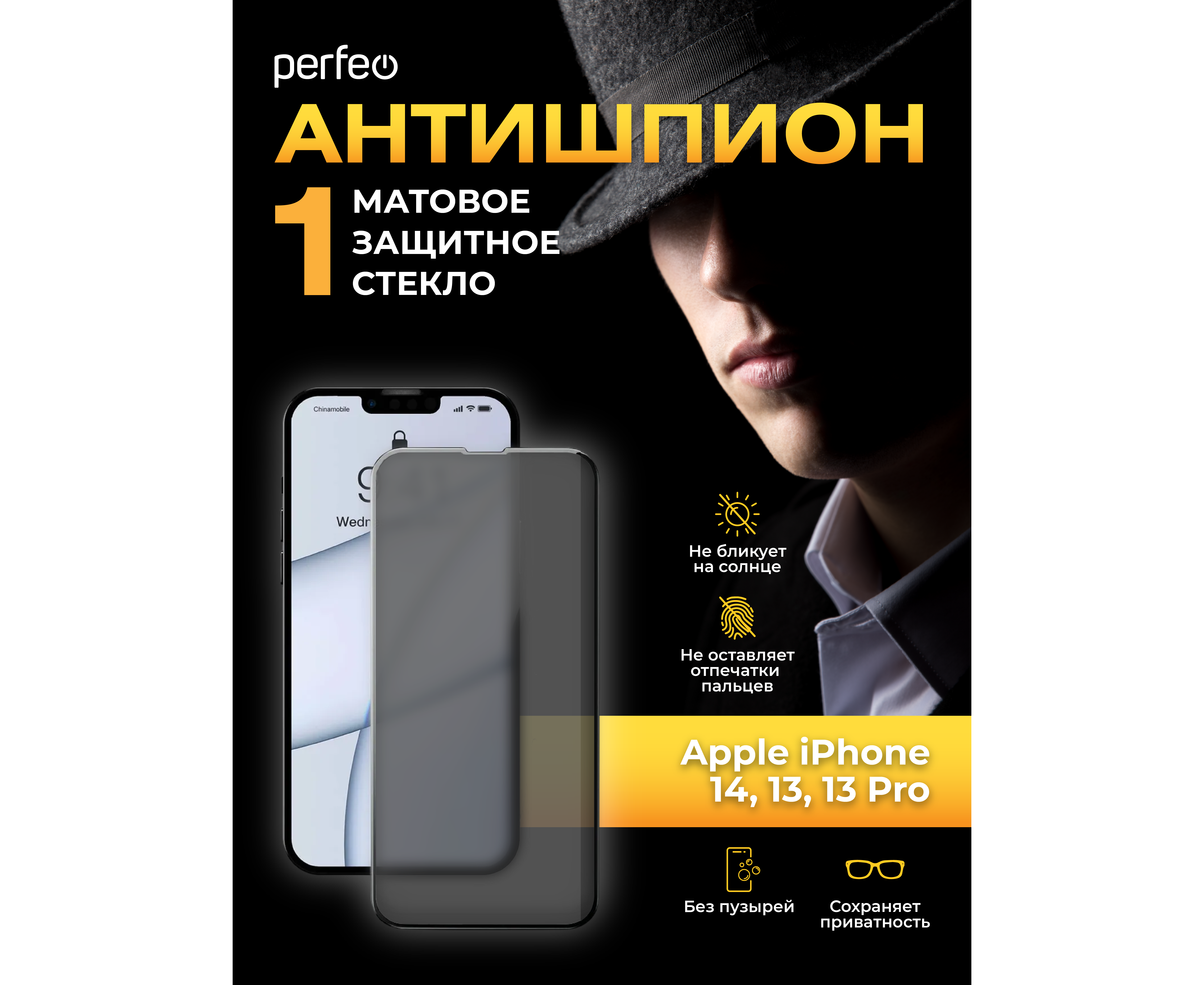 Perfeo защитное стекло Матовое Антишпион Apple iPhone 14 Pro черный