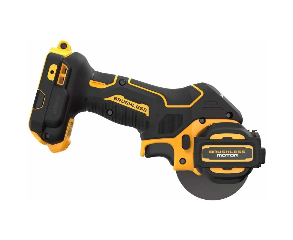 Отрезная бесщёточная аккумуляторная машина DeWALT работает с абразивными кругами и алмазными дисками 76 мм.