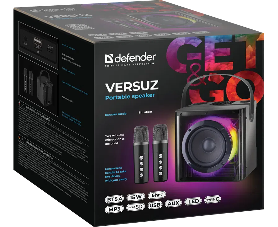 Портативная колонка DEFENDER Versuz 15Вт, BT/USB/TF/AUX/RGB/MIC 65088